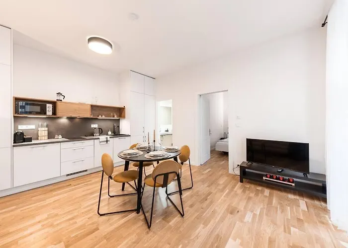 Dit appartement biedt gasten het gemak van zelfvoorzienende faciliteiten, waaronder een koffie/theezetapparaat, een koelkast en keukengerei. Het appartement is gesitueerd momenten van Křižíkova metrostation.